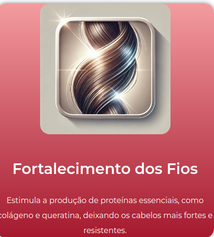 Estimula a produção de proteínas essenciais, como colágeno e queratina, deixando os cabelos mais fortes e resistentes.